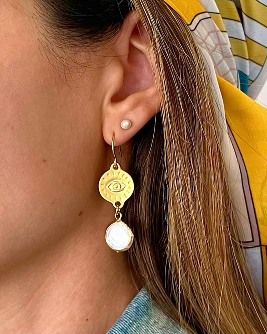 Fireball Baroque Pearl Earrings with Colorful Accents