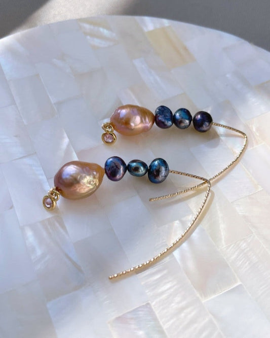 Gold Marquise Baroque Pearl Earrings